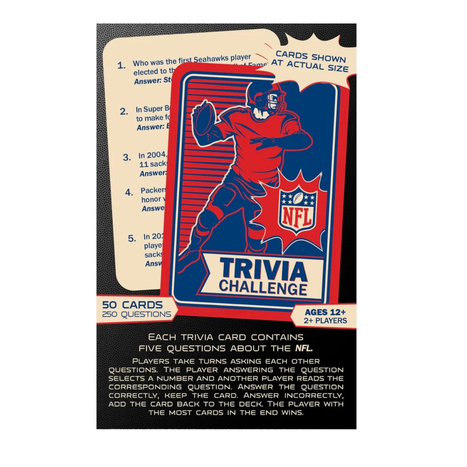 Do you think you kno wmore about the NFL than anyone else?  Here's your chance to prove it with these trivia challenge cards.  Includes 50 trivia cards with 350 league-specific questions.