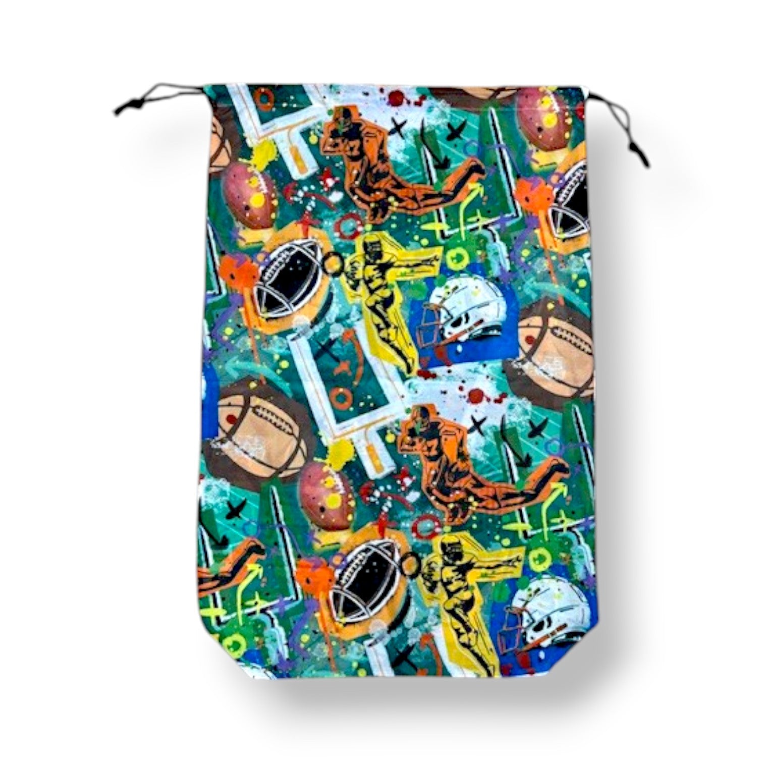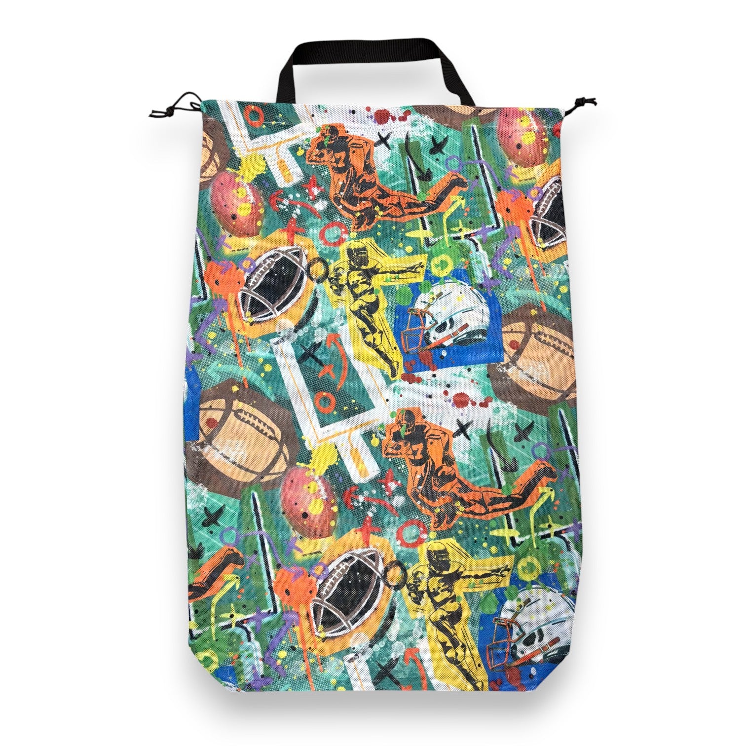 Graffiti Football Camp Mesh Laundry Bag for dirty clothes – summer camp essential, breathable mesh, Bee Bee Designs.