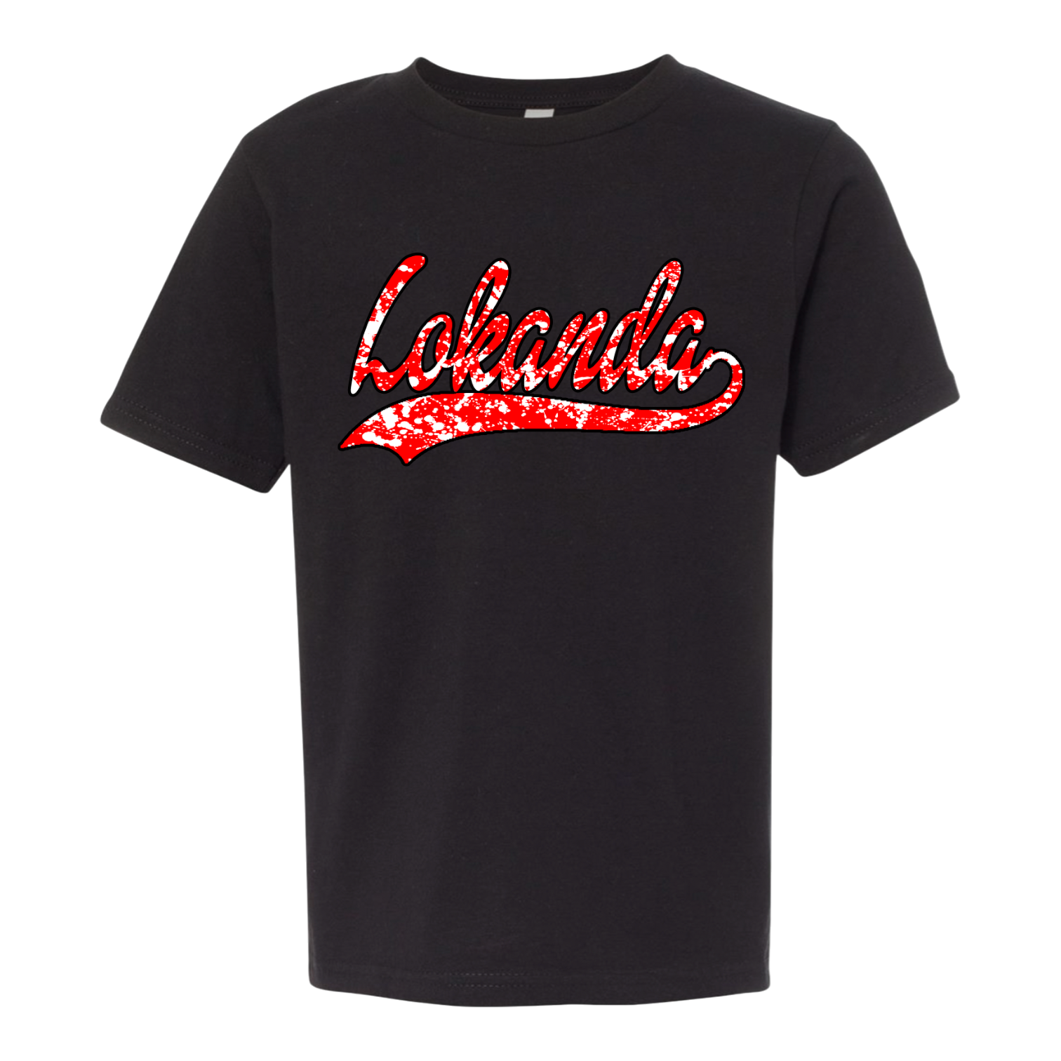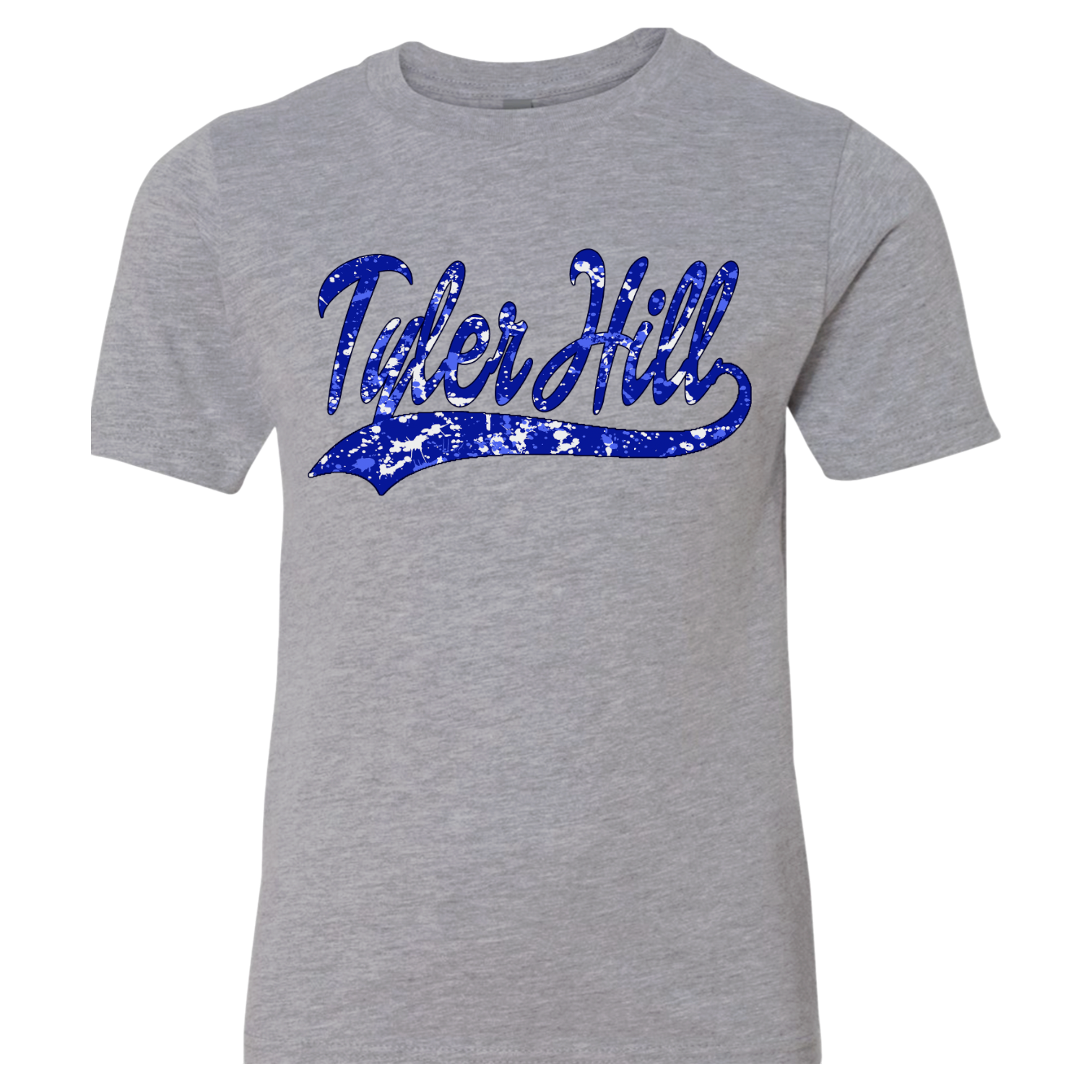 This boys camp favorite features vintage baseball-style lettering filled with a bold splatter effect, customized in your camp colors for the ultimate team look.